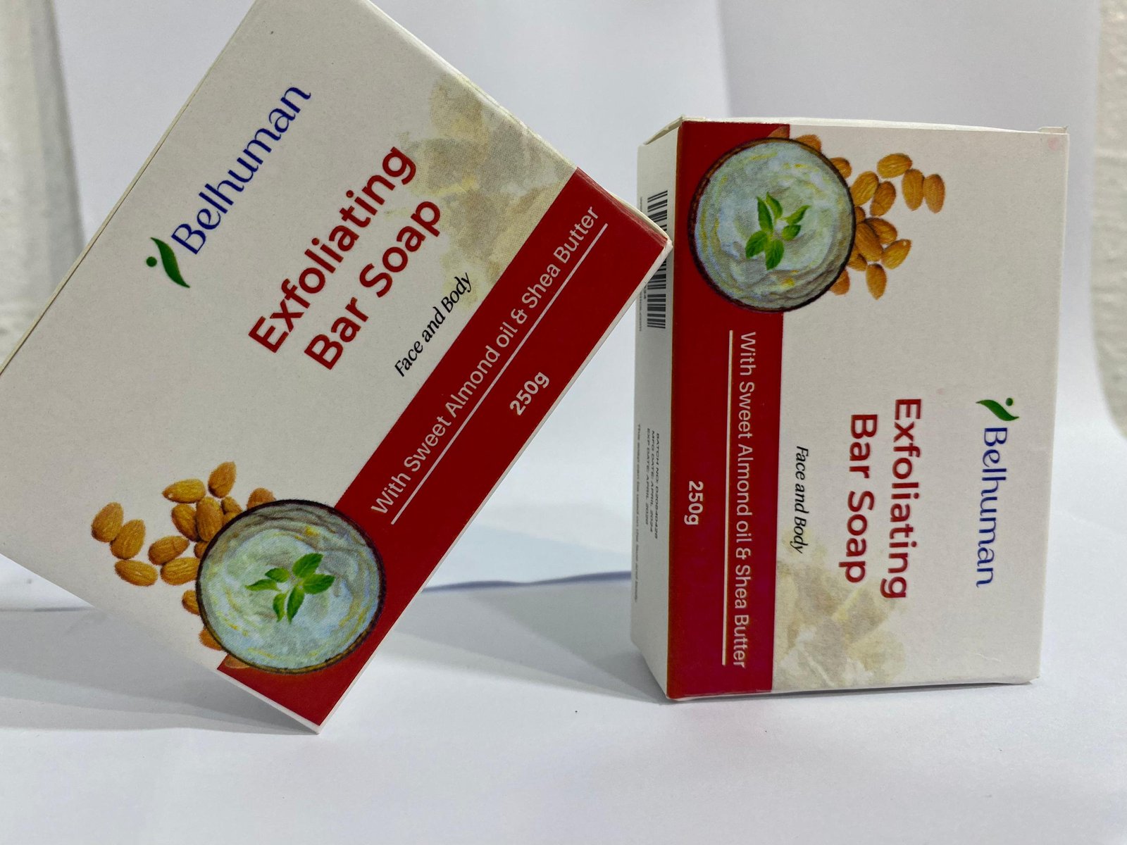 The Belhuman Exfoliating Bar Soap with its deep cleansing property help diminish skin dullness and refines your skin to give you a more even-toned look which may be caused by sun damage, dust, and pollution. Its physical exfoliating properties help to wash off dead skin cells and at the same time promote cell turnover and strengthen the skin barriers which can help your skin appear radiant and give you a velvety smooth skin texture. Our exfoliating bar soap not only removes dead skin cells but also removes blackheads and white heads from your skin. It also nourishes your skin leaving it looking naturally lighter and healthier with a misty glow and is suitable for all skin types.