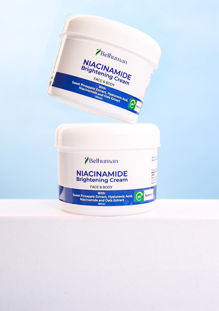 Belhuman Niacinamide Brightening Cream is expertly formulated with a unique blend of ingredients and scientifically backed actives to provide a Brighter, Radiant, Even-toned Complexion. Infused with Niacinamide, Shea Butter, Hyaluronic Acid, and a powerful mix of botanical extracts like Pineapple, Aloe Vera, and Licorice, this cream deeply hydrates, reduces hyperpigmentation, and brightens the skin.